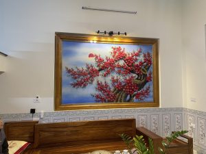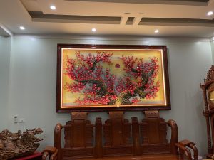 Tranh đá quý hoa đào được nhiều người lựa chọn trưng bày trong nhà vào dịp năm mới với mong muốn chặng đường phía trước sẽ gặp nhiều may mắn cũng như đón nhận những điều tốt lành nhất