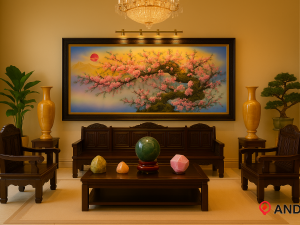 Hoa đào được coi là tinh hoa của Ngũ hành, có thể xua đuổi bách quỷ mang đến cho con người cuộc sống bình an, hạnh phúc. Không chỉ vậy, hoa đào còn tượng trưng cho sự sinh sôi nảy nở, Treo Tranh Đá quý cành đào tài lộc để mong muốn sự khang thịnh vượng, làm ăn thuận lợi, phát tài, gia đình vui vẻ.
